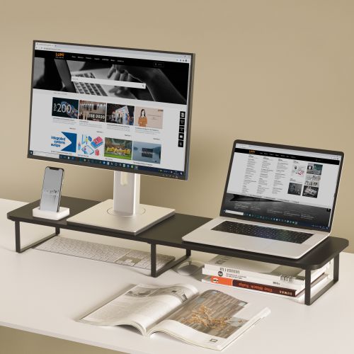 No tools or screws required - legs attach in about 10 seconds! TVB-83 Monitor Riser position a monitor or laptop for a more comfortable and healthier viewing position. Plus, the space below the shelf increases  space on the desktop, adding room for a keyboard, mouse, books and more – keeping everything clean and organized. The TVB-83 is perfect for single-monitor users.v