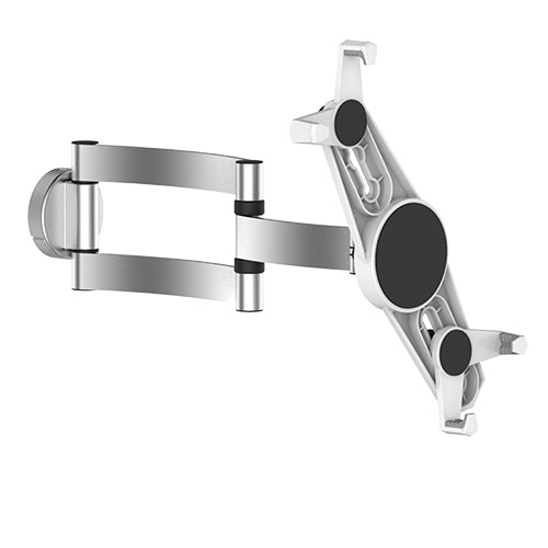 The TVB-94, Multi-functional Adjustable iPad Wall Mount/ Table Stand, makes it alternative for you to place your iPad or tablet on the wall or on the desk and other flat surface. Wall mounting with foldable and stretchable arms can either allow space saving storage or multi-angle viewing. By placing it on the desk, you can easily change it into a folded desk stand to function like any other desk stand.