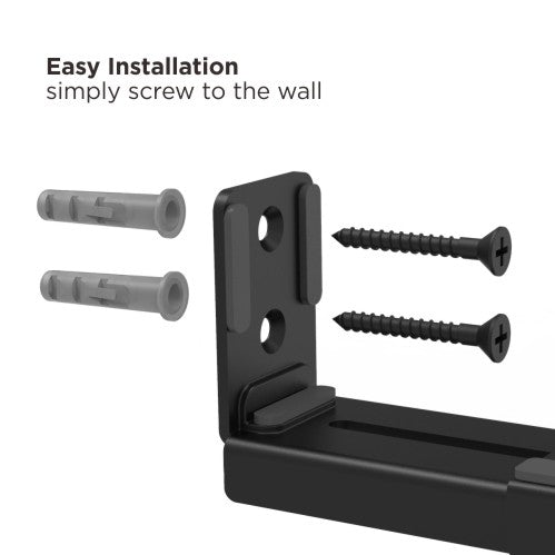 Le staffe regolabili per soundbar TVB-84 offrono la comodità di montare la soundbar a parete sotto o sopra qualsiasi TV o qualsiasi altra posizione a parete. La profondità regolabile offre un'ottima compatibilità con la maggior parte delle soundbar di qualsiasi marca con profondità da 3,5"-6,1". La manopola di bloccaggio sotto ciascuna staffa garantisce una regolazione della profondità semplice e rapida. I morbidi cuscinetti in EVA antiscivolo proteggono la soundbar dai graffi rimuovendo eventuali vibrazioni dall'audio durante l'uso. Il design discreto consente all'occhio di rimanere concentrato sulla soundbar e non sulle staffe. Soprattutto, le staffe SB-67 sono facili da installare per un'esperienza cliente complessivamente eccellente. L'imballaggio ridotto e le dimensioni leggere si traducono nella scelta più conveniente per te e i tuoi clienti.