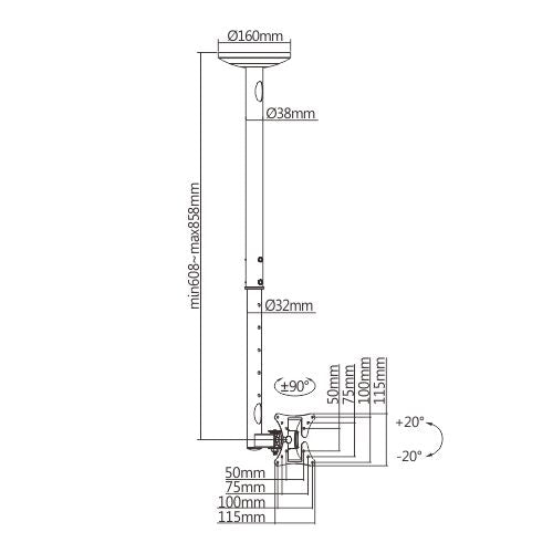 The TVB-86 is a small to medium weight ceiling mount designed to offer the ultimate in versatility and universal compatibility. It is the perfect solution for retail and commercial displays, offering 180° of swiveling and an impressive pole drop length. It combines advanced cable management features and ceiling mount covers to ensure an elegant and tidy look.