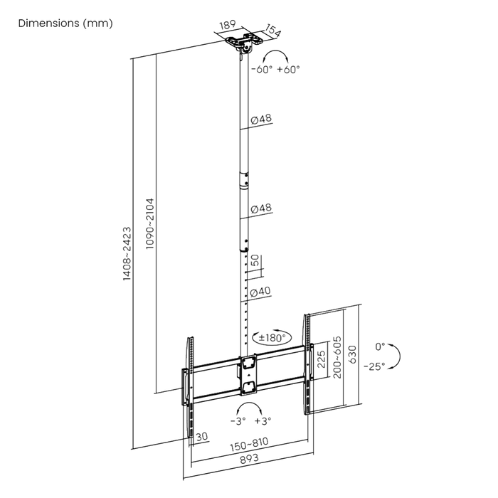 Extended Vertical Reach: The telescopic column allows for a dynamic drop length between 109 cm and 210 cm, providing optimal visibility in high-ceiling environments.